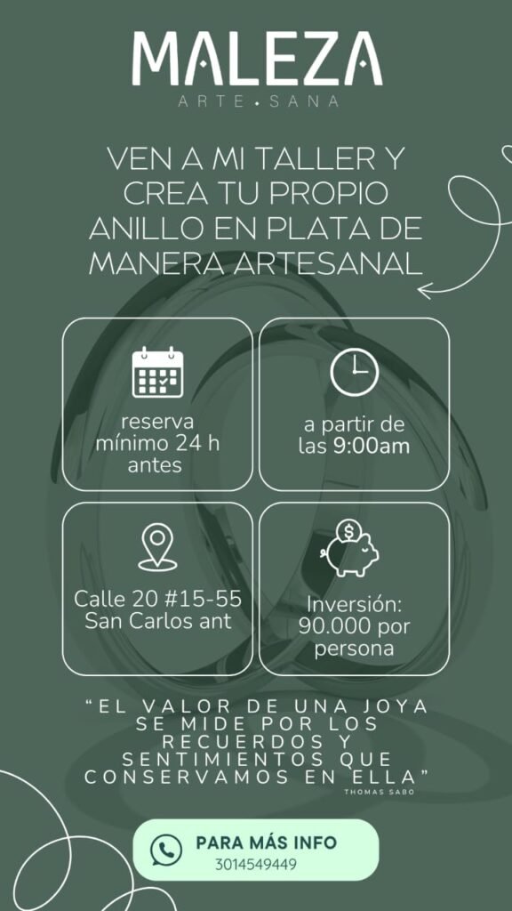 En MALEZA forjarás artesanalmente un anillo de plata, hecho por ti y para ti… o para esa persona especial. Ya sea en pareja, con tu familia o tus amigos, este momento será una forma de conectar, reconectar y aprender juntos, dejando huella con cada martillazo y cada curva.